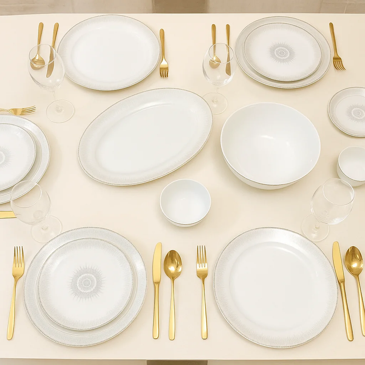 یک جعبه سرویس ظرف کامل، برای میزبانی بیدغدغه و چیدمان یکدست سفره شما. این مجموعه ۲۶ پارچه مرغوب، همهچیز را برای یک خانواده یا یک مهمانی شیک فراهم کرده است.