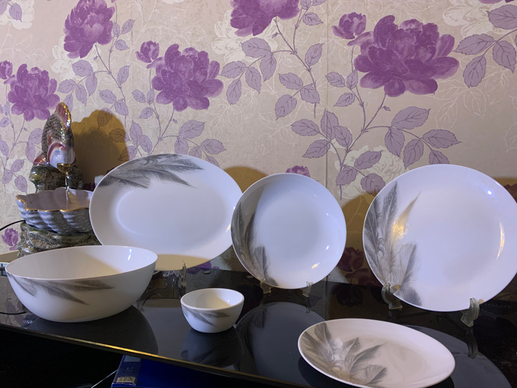 سرویس غذاخوری ۶ نفره ارکوپال ۲۶ پارچه طرح فیدر کالر طوسی