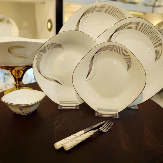 سرویس ارکوپال ۲۶ پارچه مربع مدل شمل طلا لب طلایی